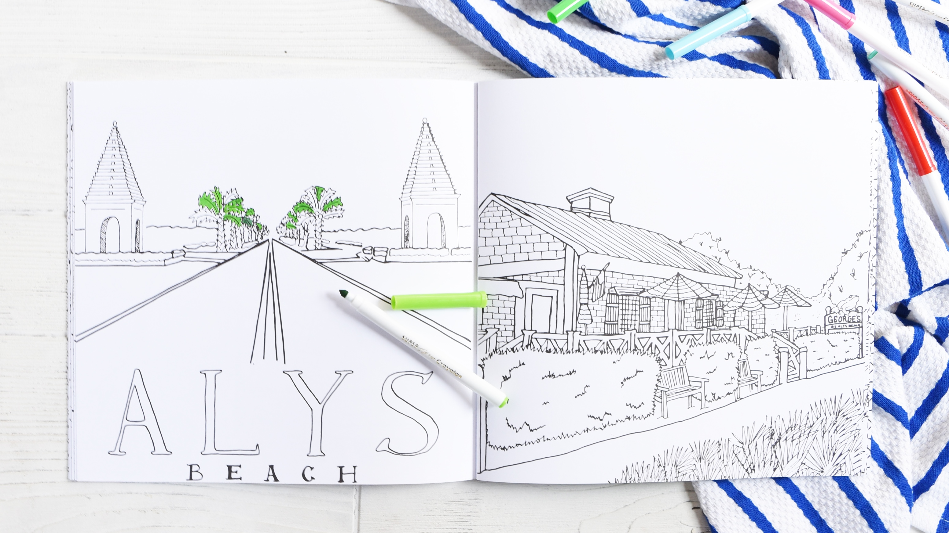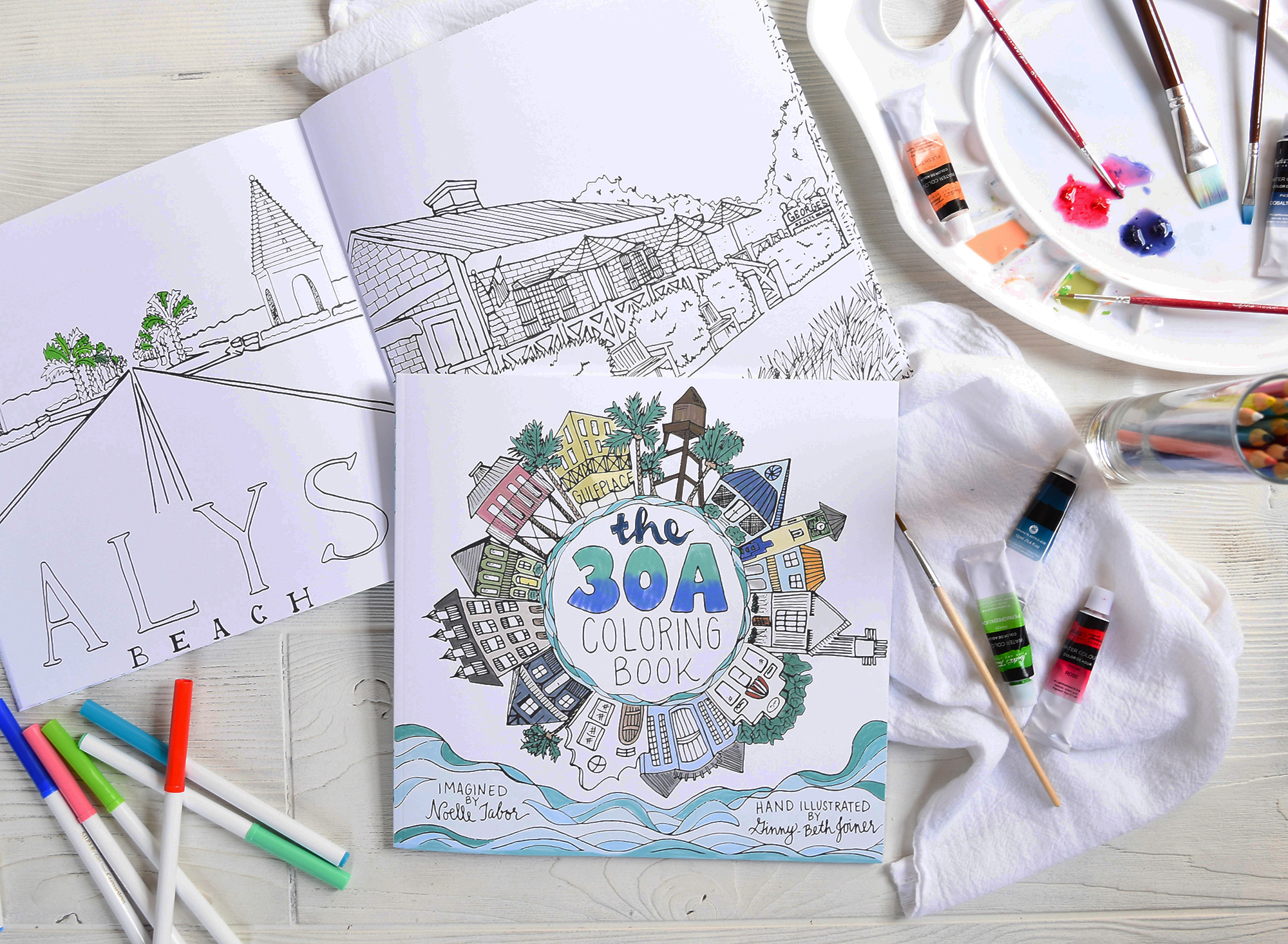 The 30A Coloring Book was imagined by Noelle Tabor and hand illustrated by Ginny-Beth Joiner. The two met at the University of West Florida where they became sorority sisters. Reconnecting 17 years later, Ginny-Beth provided her creative talents to Noelle’s imagination. Together, they’ve created the 30A Coloring Book out of the simple desire to bring something unique to those who love 30A as much as they do.